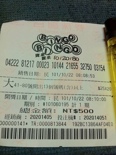 買了(大20倍)回家 回到家打開澳索 中ㄌ8:10分大