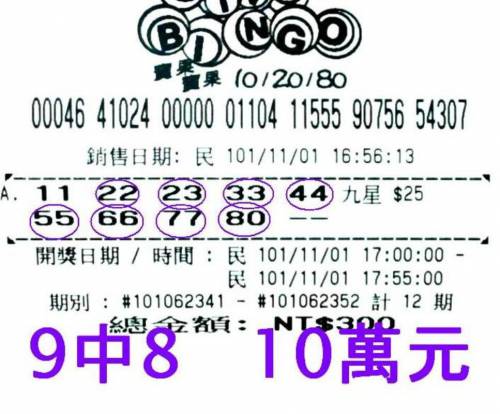 討論版列表 » Bingo Bingo 賓果賓果討論版 » [分享] (11-02) 分享 中10萬元 9中8/// 回應本話題 發表新話題
