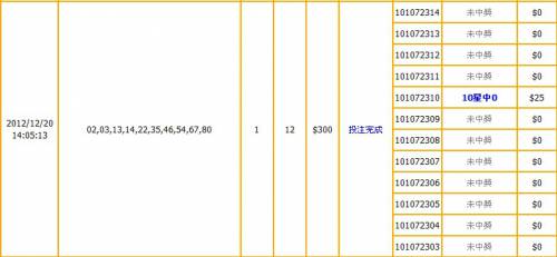 此筆獎項派彩屬台灣彩券的遊戲設計唷~台灣彩券的中獎獎金規定,若購買10星、9星、8星,一個號碼都沒中,可拿回本金25元唷,由於10、9、8星的投注中獎機率一般來說都會比較高,但一個號碼都沒有中的機率普遍來說比起中1個號碼的機率都要來的低,所以才會退還本金25元唷~~~