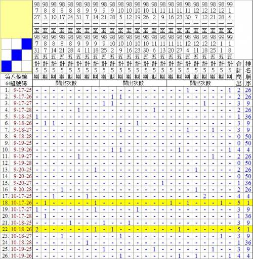 討論版列表 » 樂線九宮格討論版 » [分享] (01-10) 【九宮格】8條線資料參考(98,7,27~99,01,08 計120期)