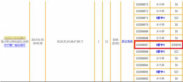 恭喜幸運的會員朋友玩線上代購Bingo8星中8~