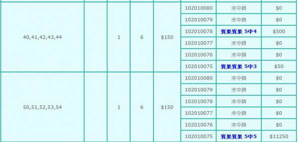 今天下午虛擬投注連續各中5星中5和5星中4
