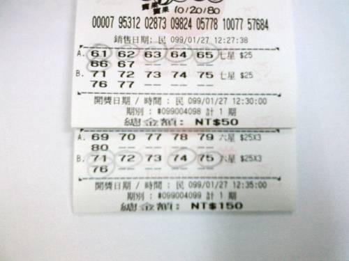 賓果賓果 6中5 $10,000 2010/01/27 13:22:04 99004108