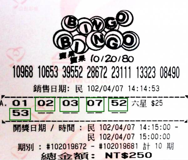 | [分享] (04-07) 嘿嘿, 賓果了,,,,,5中5/// |