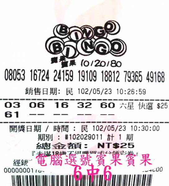 分享 6中6電腦選的賓果 讚啦