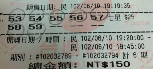 中過六星全壘打後,昨晚的選7中7,這次是自選的,