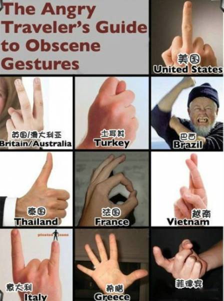 發克的手勢,10個不同國家的!以後出去旅遊別瞎比劃,真的很危險。。。