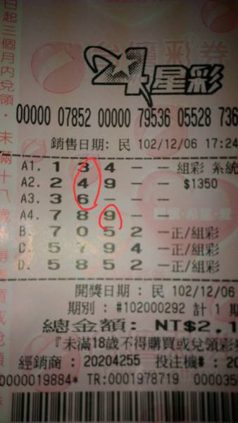 繼上次中獎發文之後,小弟一共連槓4期,真是萬般無奈,昨日依然不死心抓牌選號,沒想到中了一組,六期下來中獎機率33%,真不知能否繼續保持下去,言歸正傳吧。