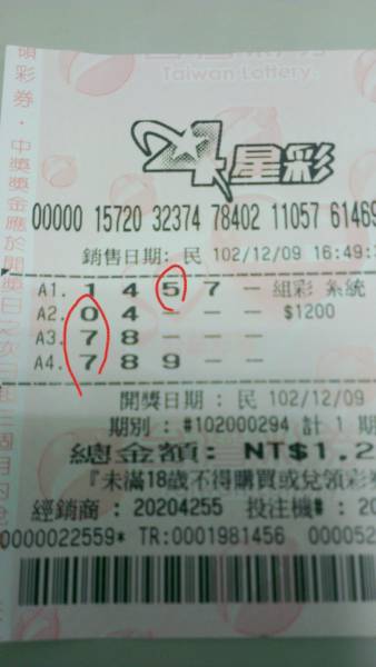 PS:今天大樂透上看四億,所以順便加碼投注了電選!!