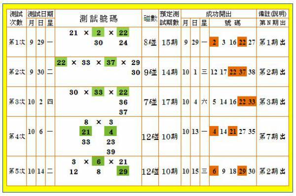 樂透 致勝 不二 法門 :範例 測試5回結果