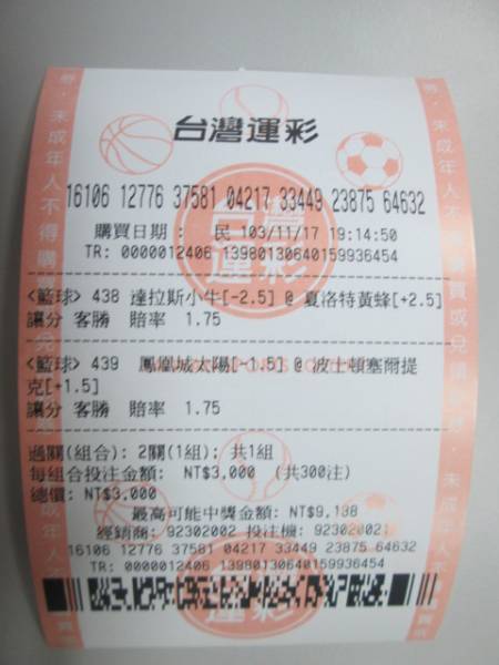 NBA小牛107:80黃蜂(一路贏到底…希望每注都能這麼沒懸念)