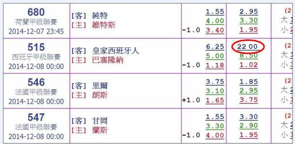 [足球] (12-08) 2200倍快開出8~