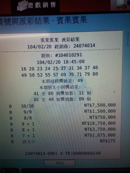 ~ 台灣彩券要把電腦賓果開獎機再修改設定吧!