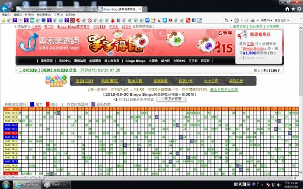 報告板大 如果日期沒算錯好像從27號那天就卡住了,28號有正常一天,再來就連續3天都在球號分布的網頁卡住,,其他球號(圖形) (文字) TV系統..都正常可正常自動更新,為獨球號分布就不行...如果是電腦問題請教教我 如何設定電腦 ..救救我..謝謝...