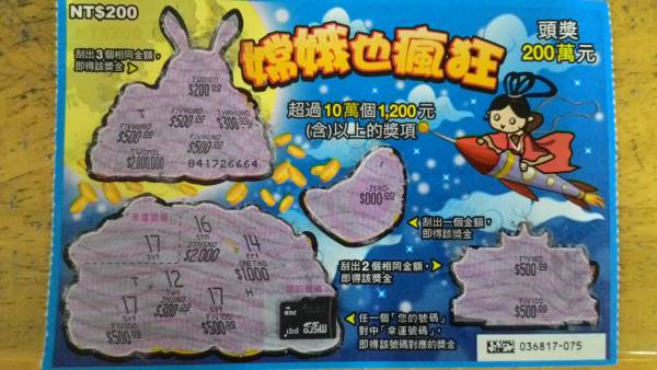 我習慣每次買刮樂,堅持31原則,就是3張連號主牌(超級777)+1張隨機挑選的副牌(嫦娥),一共買4張。