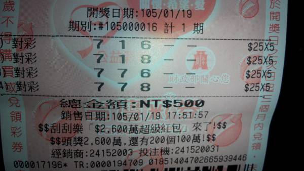 [分享] (01-20) 對彩