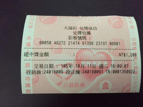 恭禧中獎,順利抱走彩金!