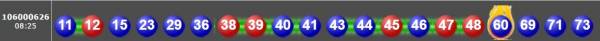 8:25 106000626 五星 1 NT$7,500 11 12 15 23 29 36 38 39 40 41 43 44 45 46 47 48 60 69 71 73