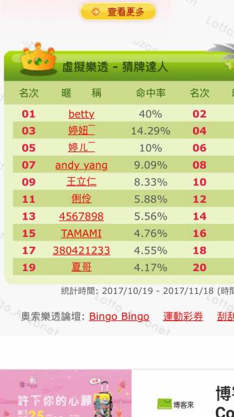 中獎排行榜(Top 20)