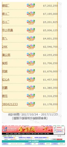 統計時間: 2017/10/24 - 2017/11/23