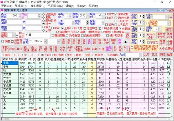 統計2017年10月17日到2018年10月16日 365天 單雙大小遺漏週期