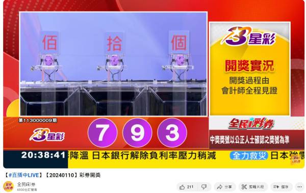 113年01月03日即時開獎 來自全民i彩券YT [三立新聞]