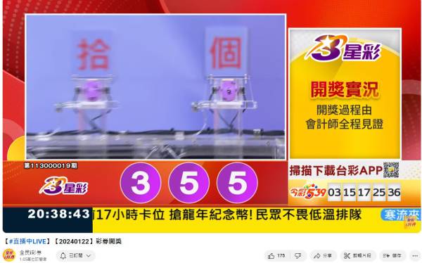 113年01月22日即時開獎 來自全民i彩券YT [三立新聞]