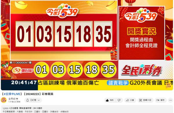 113年02月20日即時開獎 來自全民i彩券YT [三立新聞]