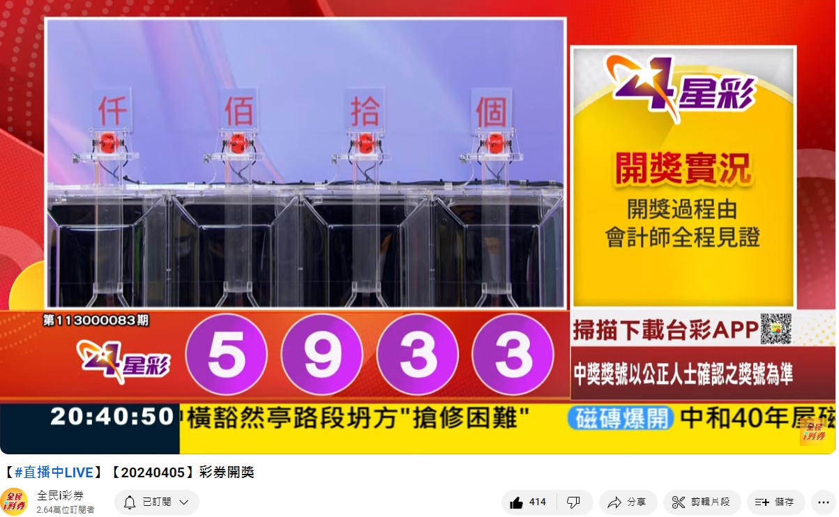 113年04月03日即時開獎 來自全民i彩券YT [三立新聞][4月04日重播]