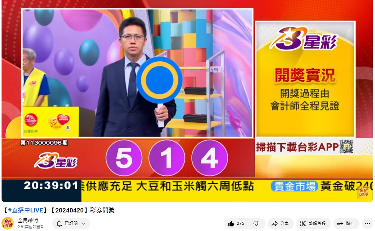 專區【全民i彩券】台灣彩券開獎實況轉播 威力彩、今彩539、三星彩、四星彩 |三立新聞網 SETN.com - YouTube