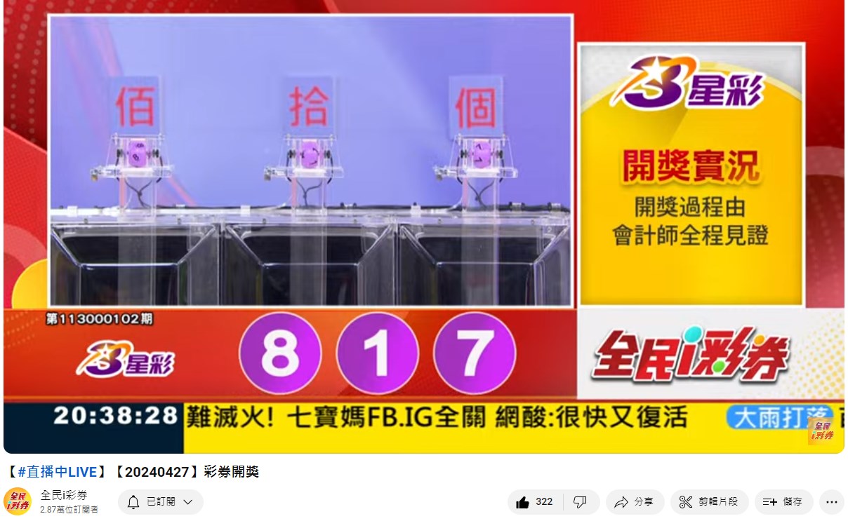 備註: 台彩因給全民兌獎方便,會在電視節目播完後,於全民i彩券YT官方頻道