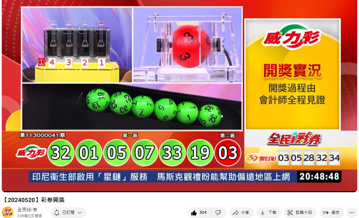 備註: 台彩因給全民兌獎方便,會在電視節目播完後,於全民i彩券YT官方頻道