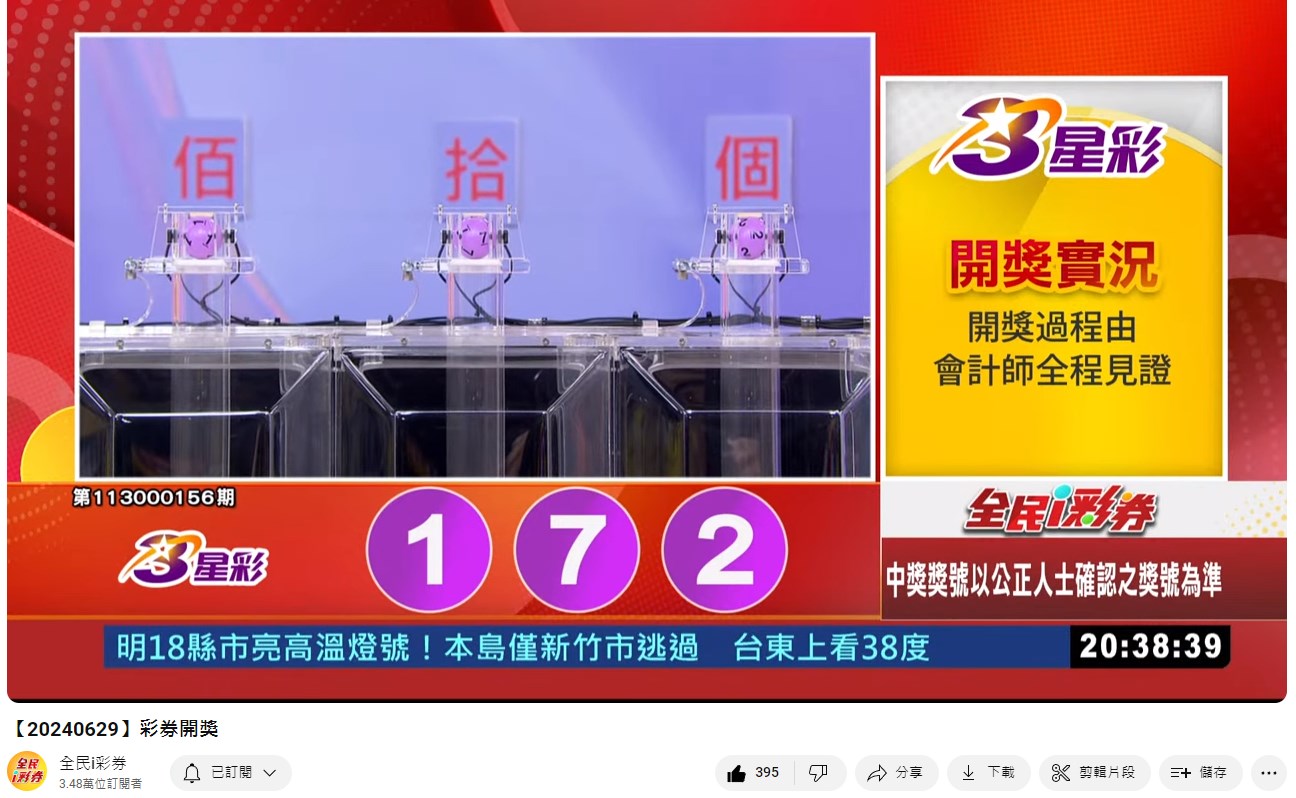 備註: 台彩因給全民兌獎方便,會在電視節目播完後,於全民i彩券YT官方頻道