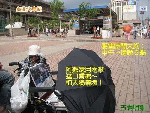 台北車站附近有一位90歲的老阿嬤「林蜂」,早年喪夫喪子,2009年相依為命的二兒子又成了植物人,龐大的醫藥費壓的老阿嬤喘不過氣來,只好每天推著輪椅賣口香糖維生,而且存摺內連800元都不到,她只希望有善心人士願意雇用她,讓兒子的醫藥費有所著落。滿頭白髮,臉上佈滿皺紋的林蜂老阿嬤,在台北車站路旁,拉開嗓門吃力的叫賣口香糖高齡89歲的林蜂阿嬤,連腰都挺不直,沒福氣在家享清福,而是在路旁風吹日曬賣口香糖。