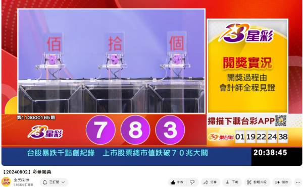 備註: 台彩因給全民兌獎方便,會在電視節目播完後,於全民i彩券YT官方頻道