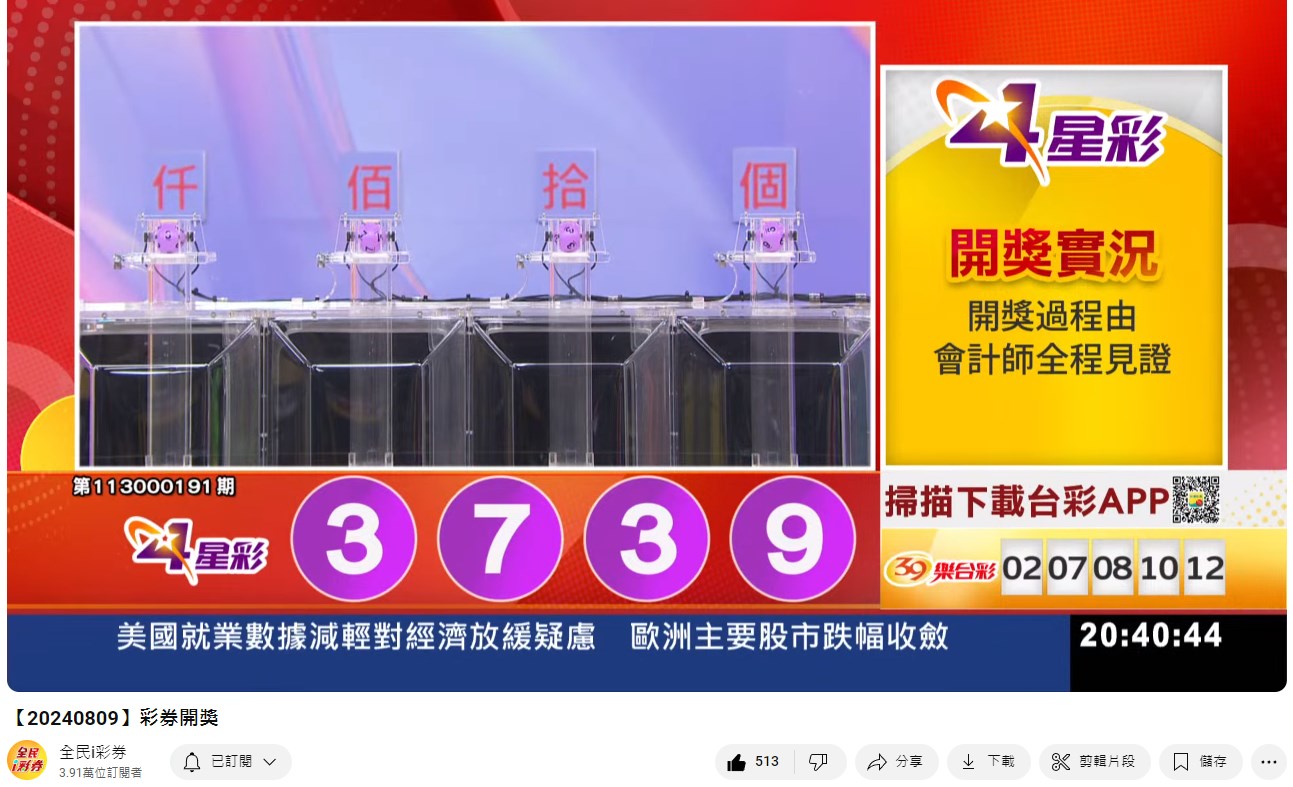 113年08月08日即時開獎 來自全民i彩券YT [三立LIVE新聞][8月09日重播]