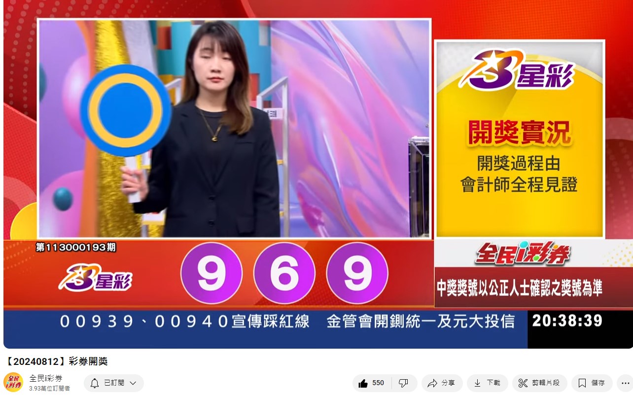 備註: 台彩因給全民兌獎方便,會在電視節目播完後,於全民i彩券YT官方頻道