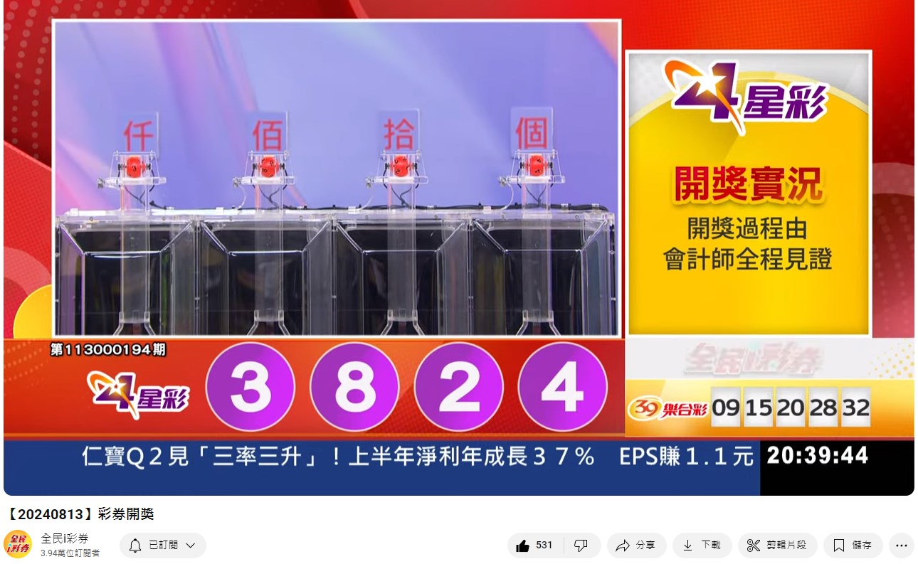 113年04月24日即時開獎 來自全民i彩券YT [三立新聞][4月25日重播]