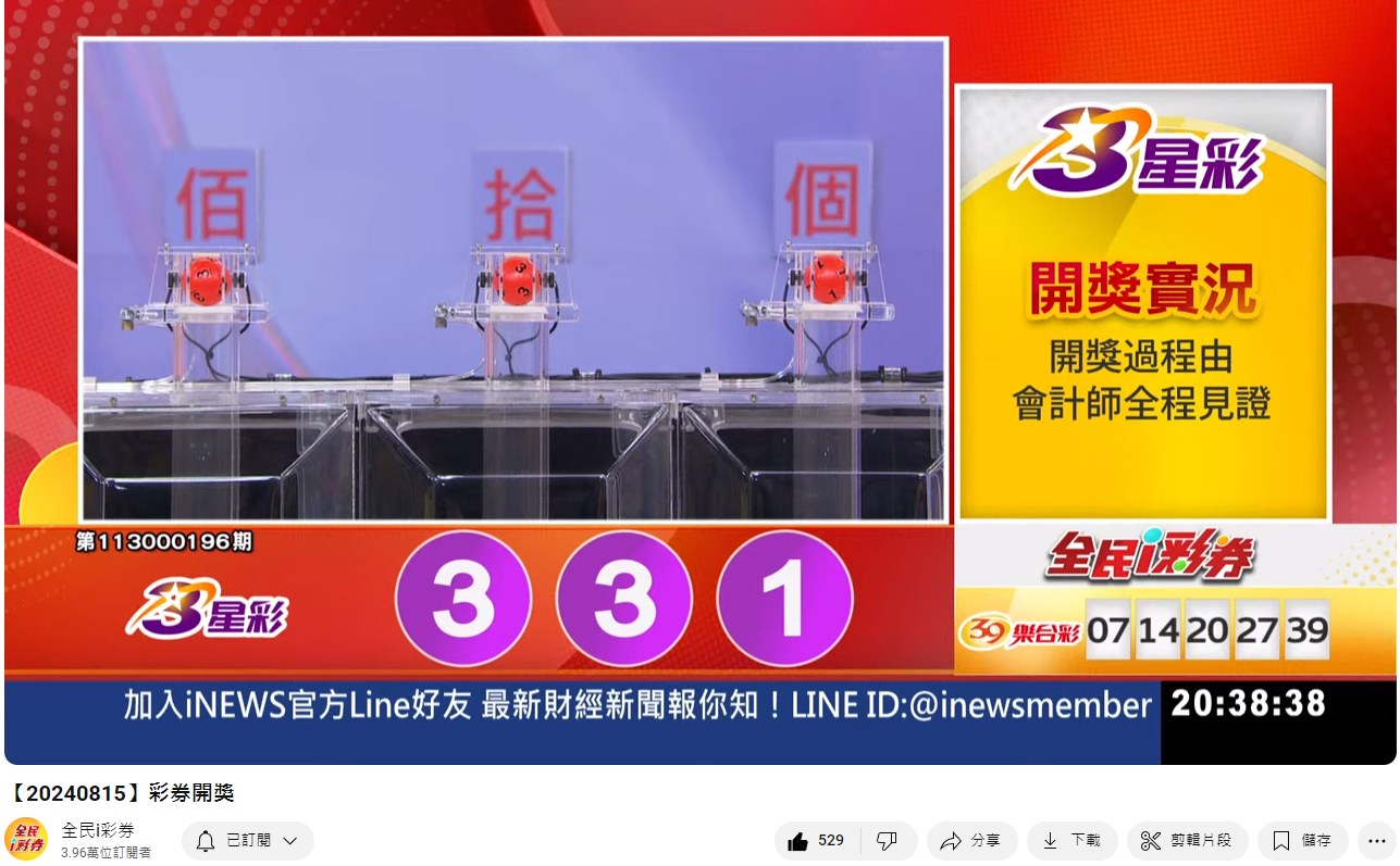 113年08月15日即時開獎 來自全民i彩券YT [三立LIVE新聞][8月16日重播]