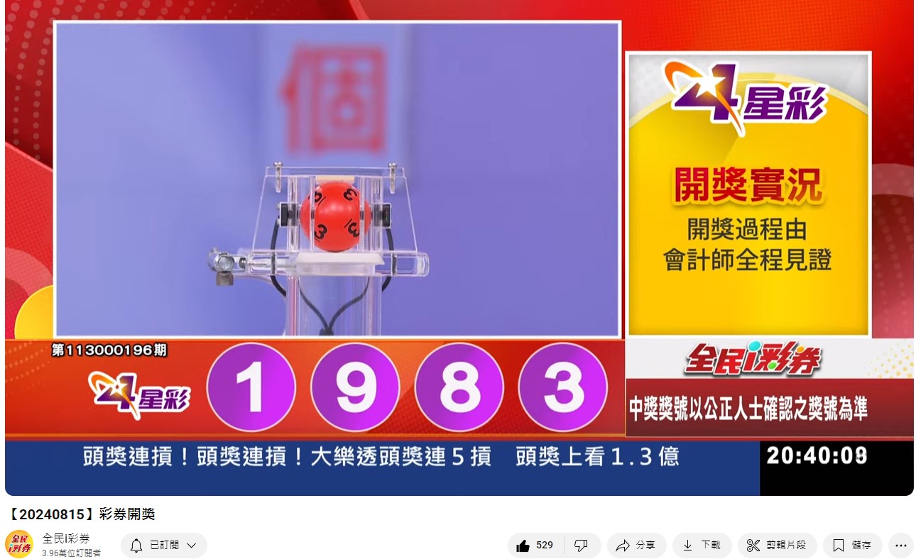 備註: 台彩因給全民兌獎方便,會在電視節目播完後,於全民i彩券YT官方頻道