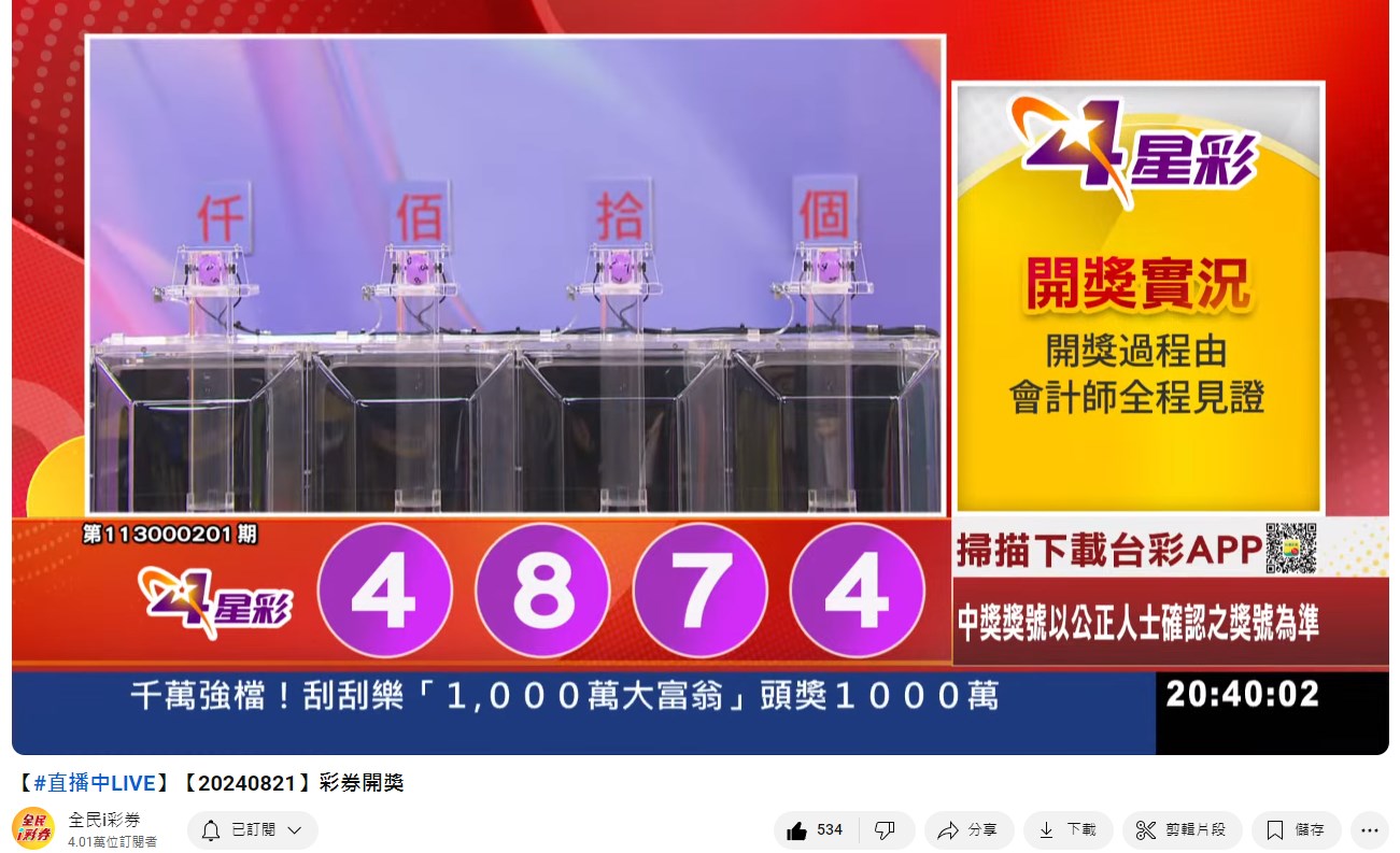 備註: 台彩因給全民兌獎方便,會在電視節目播完後,於全民i彩券YT官方頻道