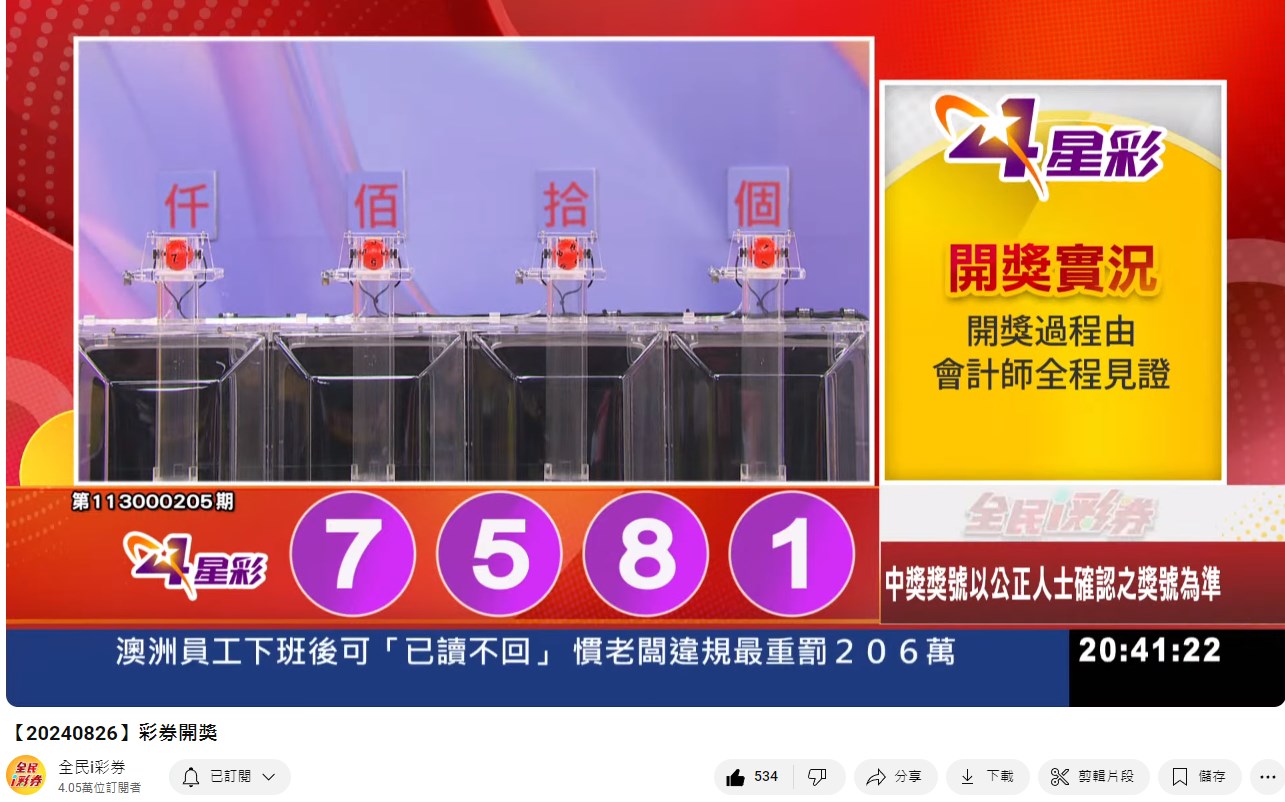 備註: 台彩因給全民兌獎方便,會在電視節目播完後,於全民i彩券YT官方頻道