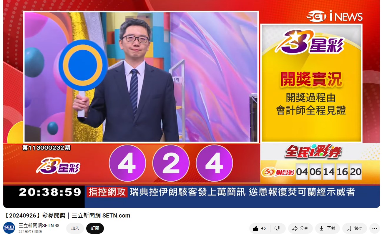 專區【全民i彩券】台灣彩券開獎實況轉播 威力彩、今彩539、三星彩、四星彩 |三立新聞網 SETN.com - YouTube