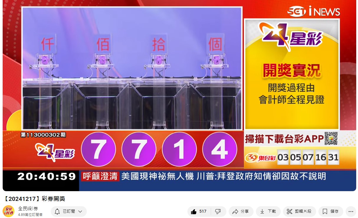 113年12月17日即時開獎 來自全民i彩券YT [三立新聞網SETN][12月18日重播]