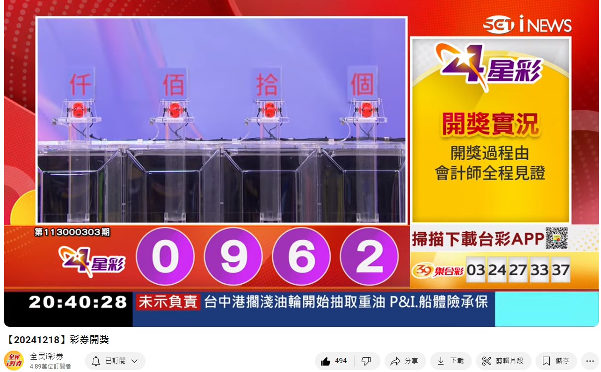 備註: 台彩因給全民兌獎方便,會在電視節目播完後,於全民i彩券YT官方頻道
