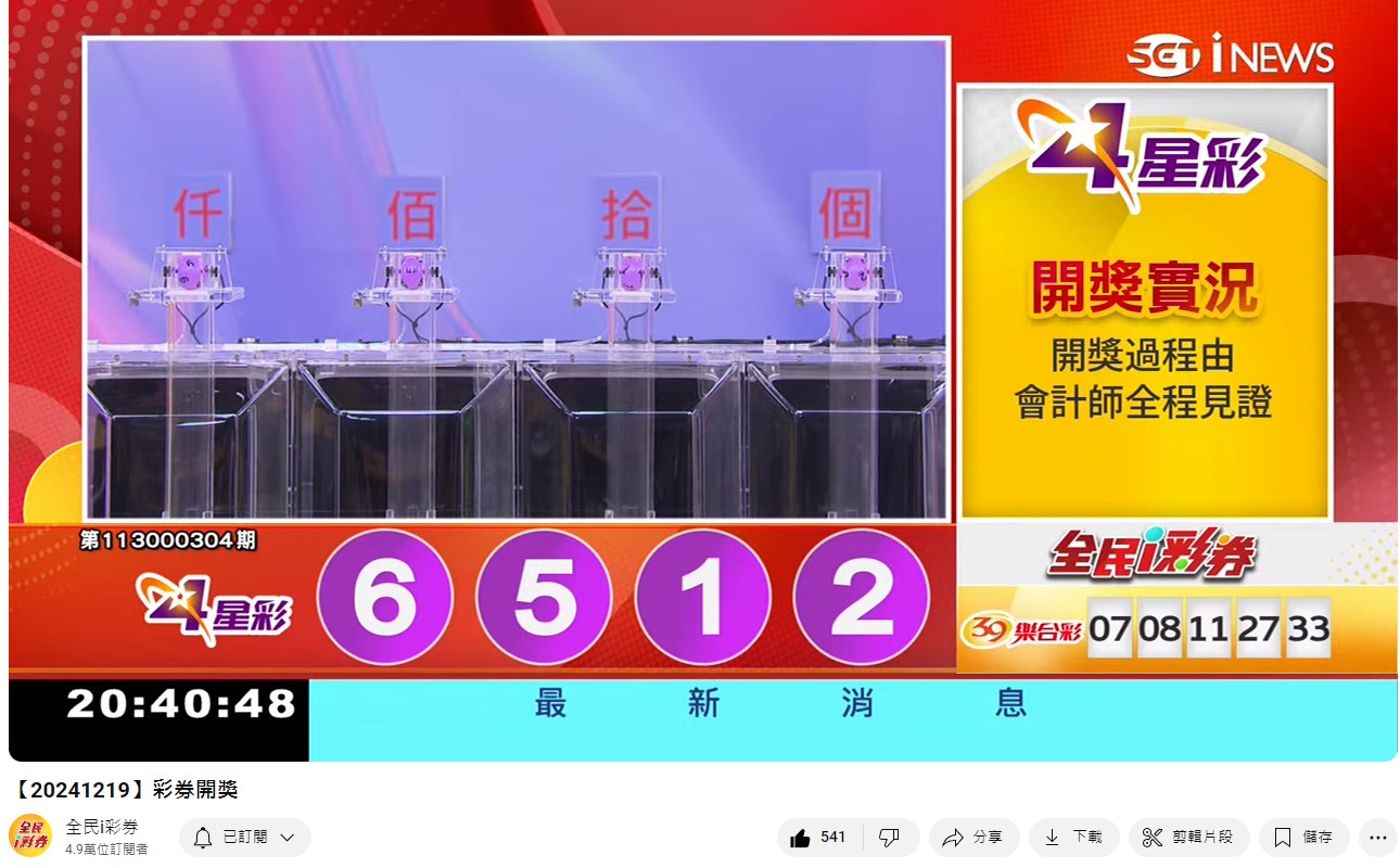 113年12月19日即時開獎 來自全民i彩券YT [三立新聞網SETN][12月20日重播]