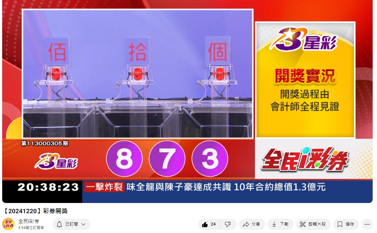 113年12月20日即時開獎 來自全民i彩券YT [三立新聞網SETN][12月21日重播]