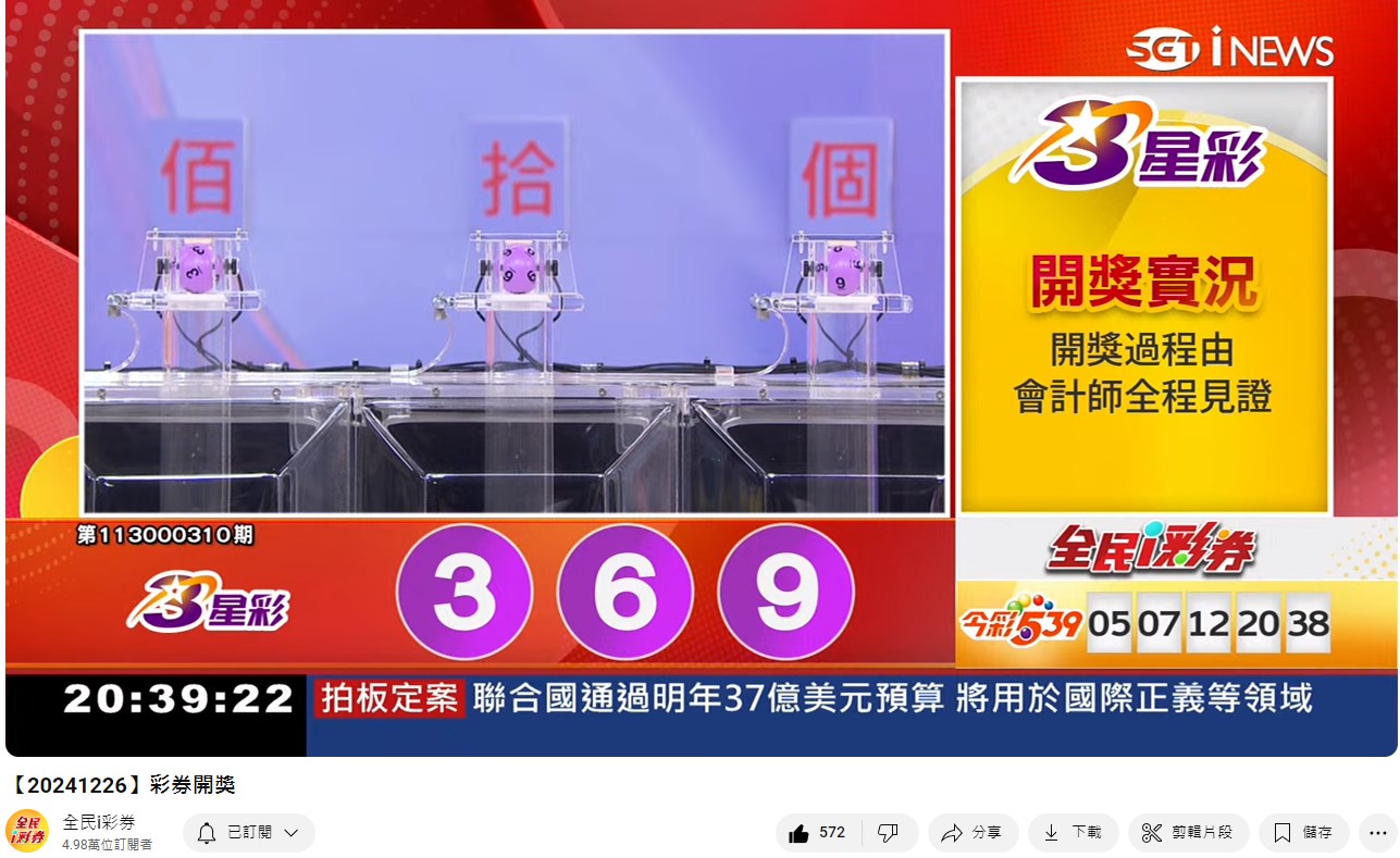 113年12月26日即時開獎 來自全民i彩券YT [三立新聞網SETN][12月27日重播]