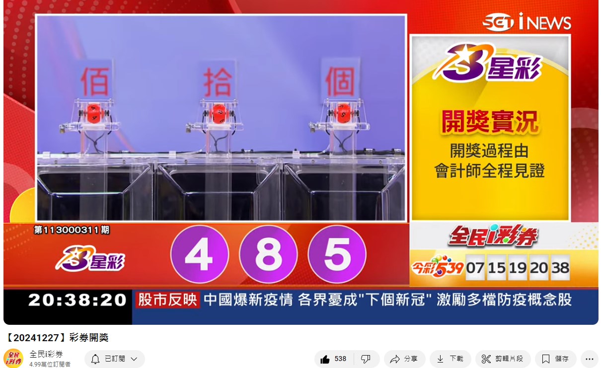 113年12月20日即時開獎 來自全民i彩券YT [三立新聞網SETN][12月21日重播]