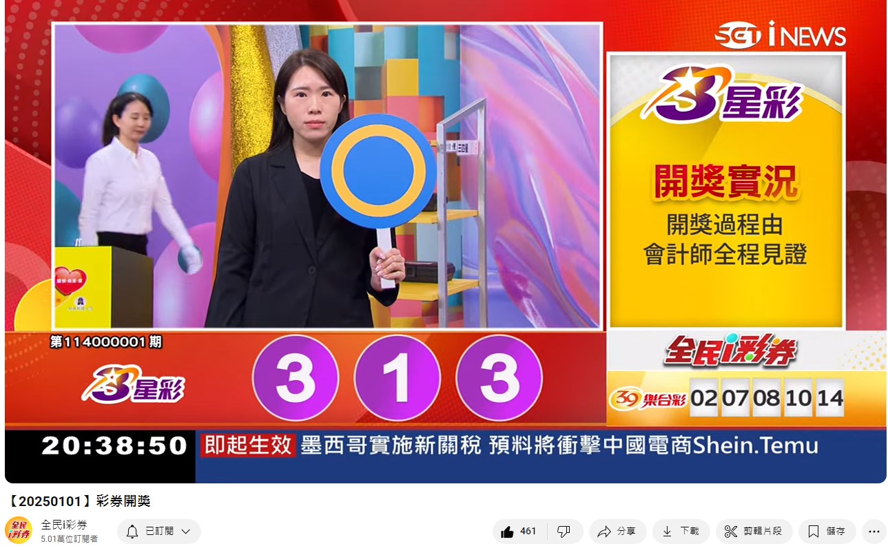 備註: 台彩因給全民兌獎方便,會在電視節目播完後,於全民i彩券YT官方頻道
